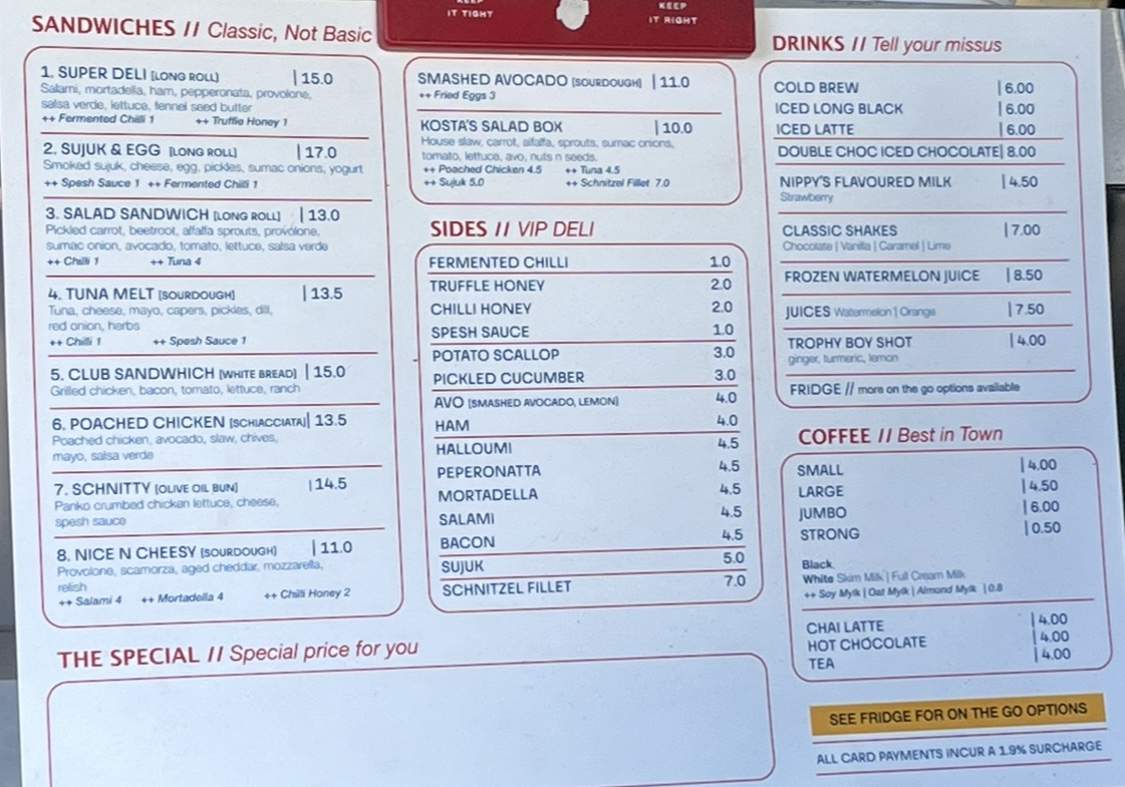 Welcome to Kosta's Takeaway Rockdale, the hidden gem of Rockdale located at 412 W Botany St. This cozy café presents a mouthwatering menu that promises to satisfy your cravings. Highlights include the renowned Schnitty Burger, featuring a succulent panko schnitzel drizzled with VIP sauce, lettuce, and cheese—a true delight for burger enthusiasts. For those seeking something lighter, the House Salad offers a refreshing blend of slaw, avocado, and pickled carrots, all dressed in mustard. Vegetarians can indulge in the Halloumi Zaatar Focaccia, bursting with flavors of olives and tomatoes.